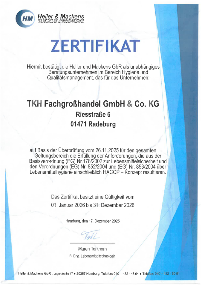 Um den neuesten Anforderungen gerecht zu werden ist unser Betrieb seit 2005 HACCP zertifiziert und erhielt 2007 das Zertifikat für ökologisch erzeugte Lebensmittel.